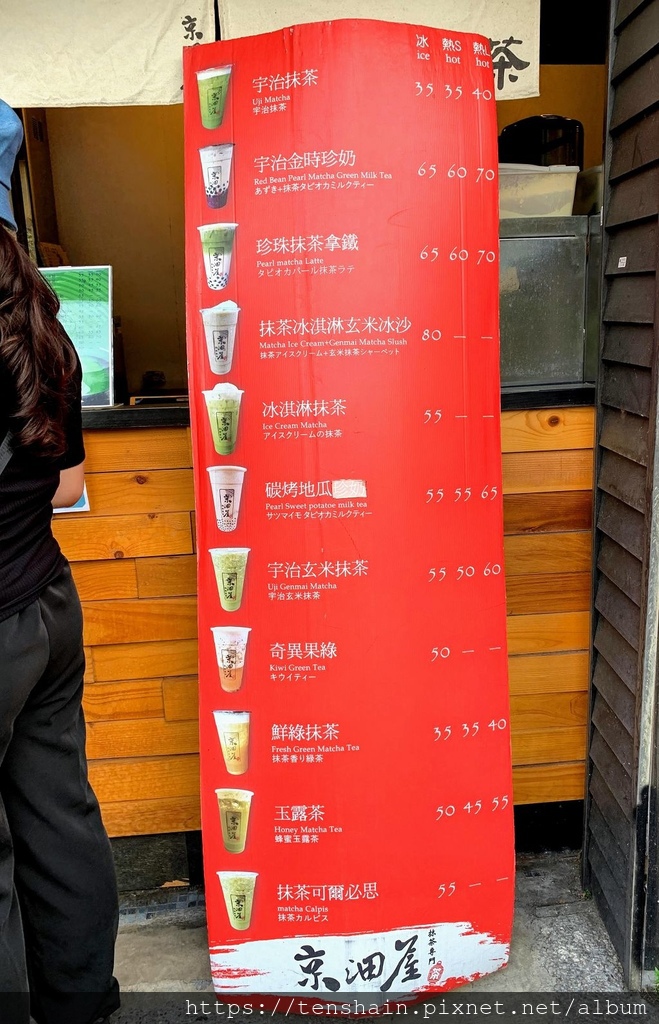 雞排雖然好吃,但是吃完又口渴了,怎麼辦?那就再找一家飲料店,治一下口渴吧~這次我們來到一家日式風味的京沺屋抹茶專門店。雖然叫「抹茶專門店」,但還是有不含抹茶的飲料,所以不愛抹茶的朋友一樣可以在這裡找到你喜歡的飲料。