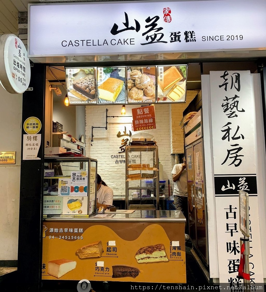 買完王記滷味,我們來到山益蛋糕,又叫朝藝私房古早味蛋糕。會來這一家,是因為它就在甲文青的旁邊。剛剛在甲文青買飲料的時候,就被旁邊飄來的陣陣蛋糕香吸引,所以決定買一塊回飯店吃看看。