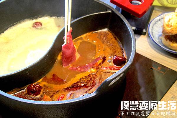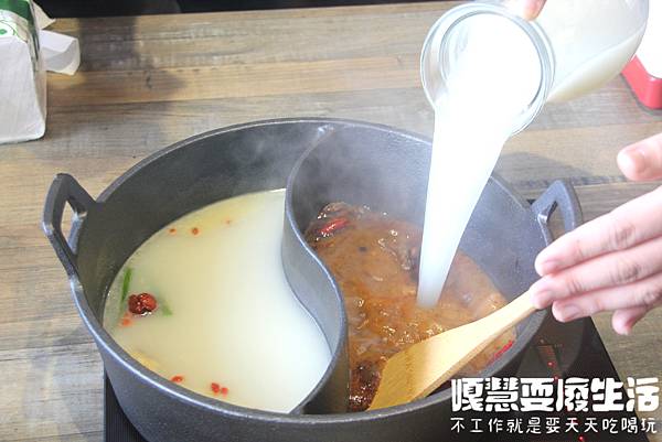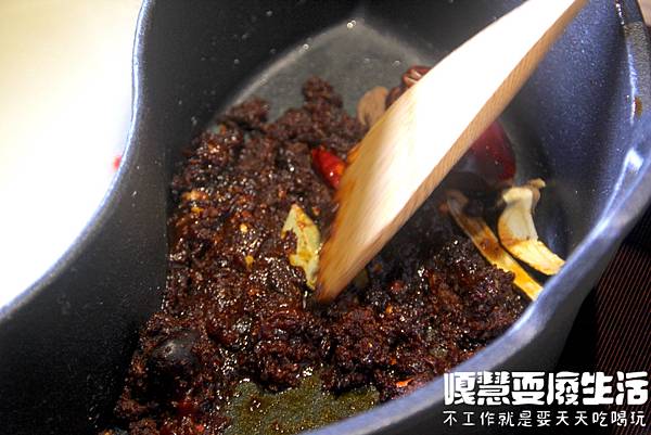 饌和牛店員會在桌邊幫你炒鍋,以秘制料理油搭配各種辛香料爆炒,在炒製的過程中馬上可以聞到濃郁的麻辣香氣,忍不住讓人吞了口水,最後完成後會幫你加上高湯。