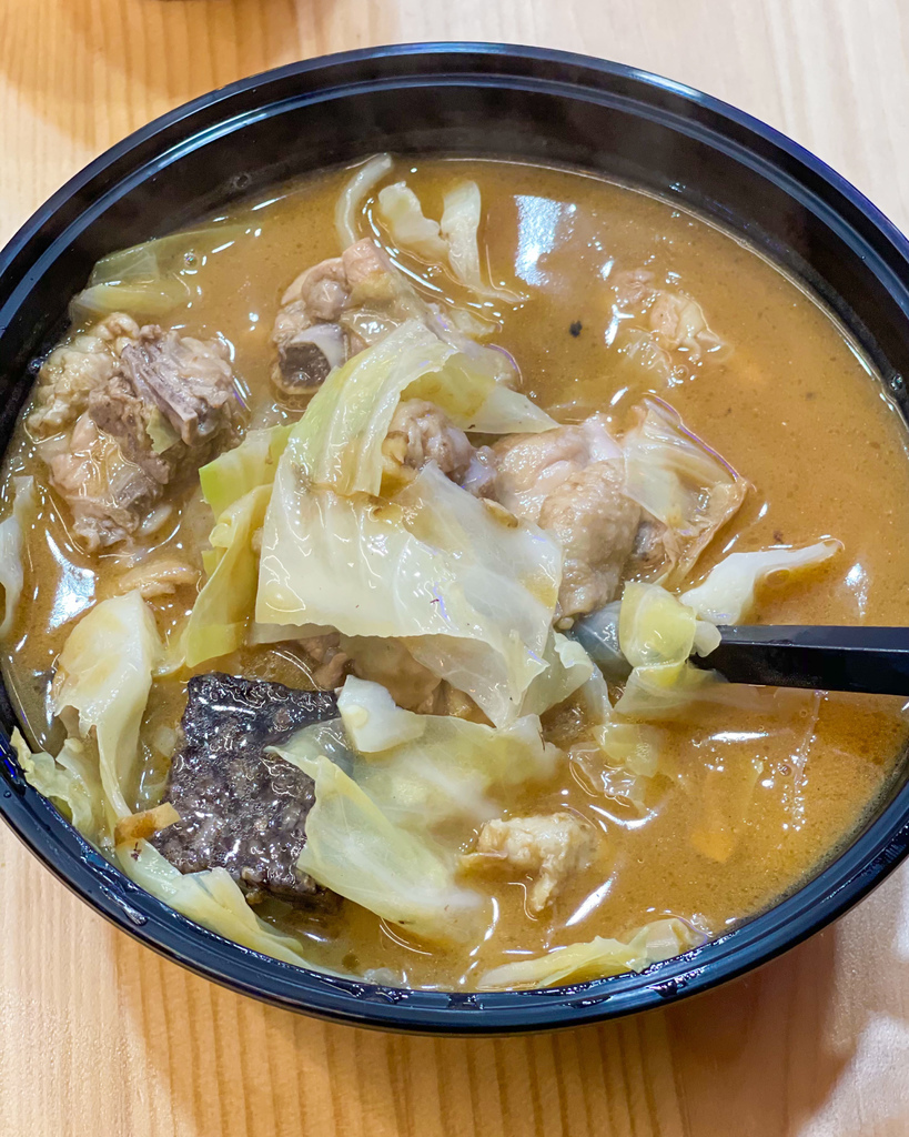跟其他湯頭不同的是這邊的雞腿是切塊下去爆炒的