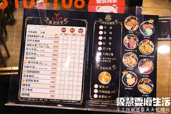 在紅吱吱門口就可以看到MENU,160元就能享用一客排餐,而且還有自助吧。