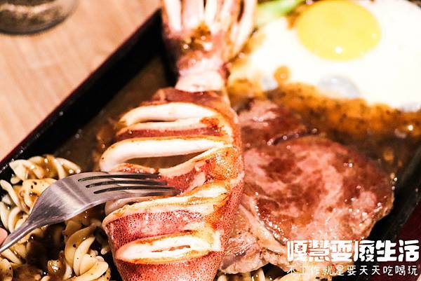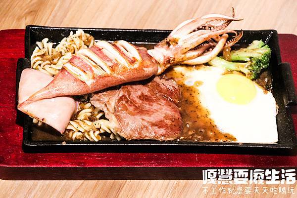 魷魚整個超級Q彈,加購的份量完全蓋住特製牛排,牛排薄嫩好吃,比起水嫩Q談的魷魚略顯遜色。