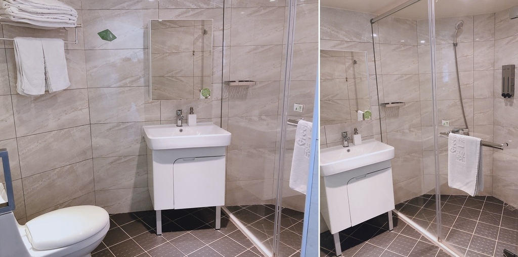 衛浴採乾濕分離,沐浴乳、洗髮乳也都非小瓶裝,從每個細節都落實環保不浪費。
