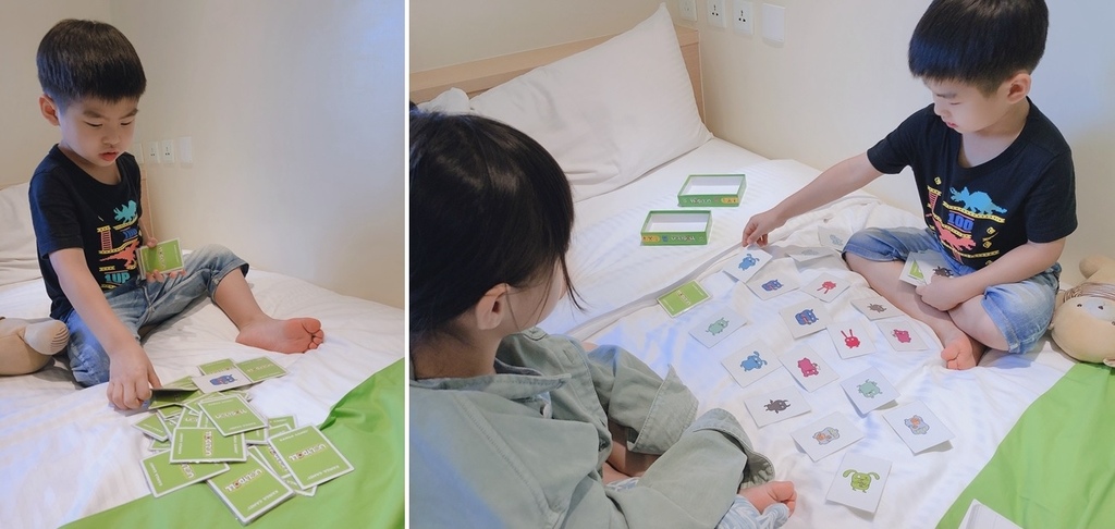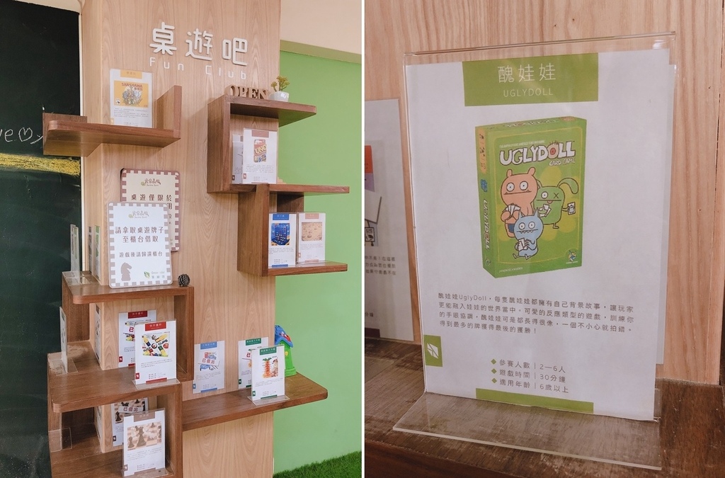 葉綠宿旅館也有提供各式桌遊,好比UNO牌、企鵝敲冰磚、翻滾吧猴子等等。兒子這時候挑了一款醜娃娃,他說學校也有玩~ 拿著牌子去櫃檯,附上押金100元就可以借回房間玩囉。