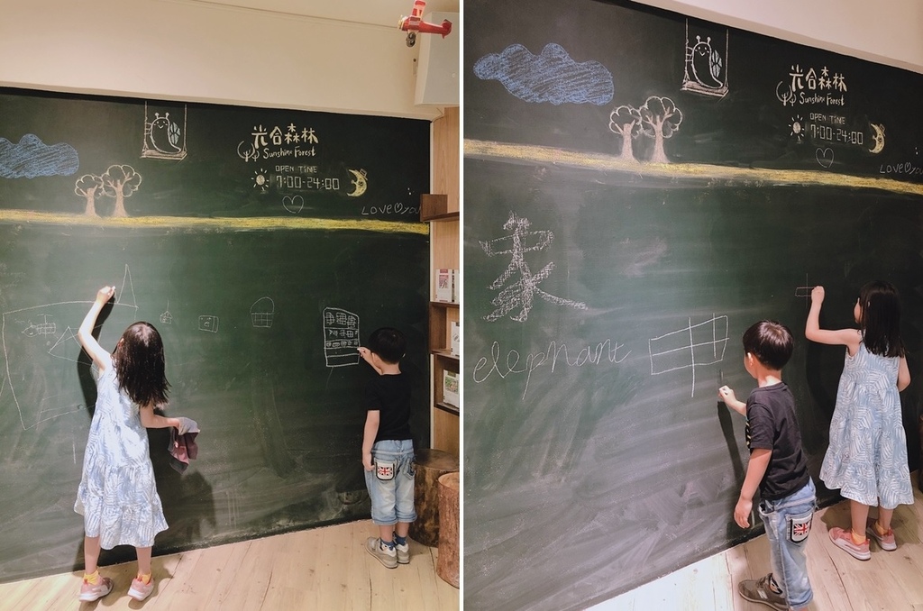 『慢走塗鴉牆』,我們下午玩過一次,晚上來吃消夜的時候,兩隻寶又跑來玩“你畫我猜“的遊戲:)