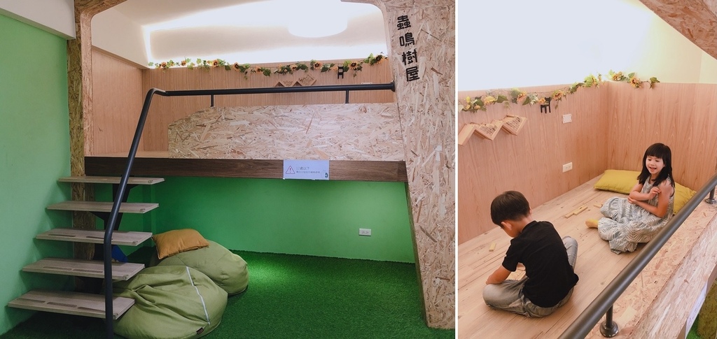 『蟲鳴樹屋』是兩層式空間,樓上有擺放一些積木可以玩。