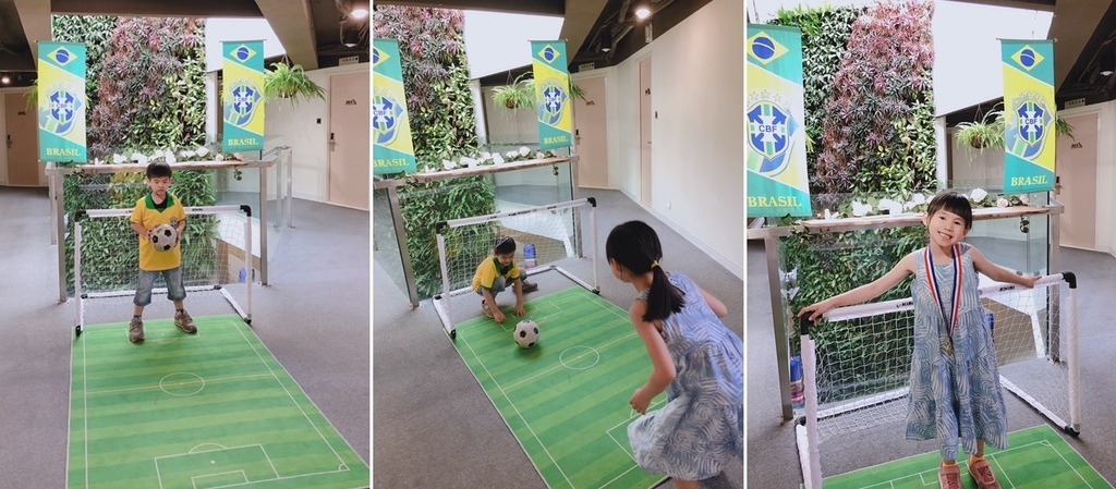我們就是住在8樓,很適合親子家庭入住耶,每次經過都要玩一下~ 兒子身上的黃色足球衣就是在B1F變裝的唷,牆壁上還掛有好幾個獎牌,這區實在太可愛了!
