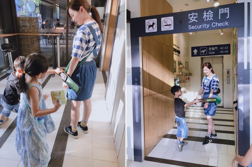 更酷的是居然還有安檢門跟登機門。最可愛的是,安檢門還真的有金屬探測器,碰到金屬真的會逼逼叫唷!小小孩超嗨的~ 每次經過都想拿起來逼逼。