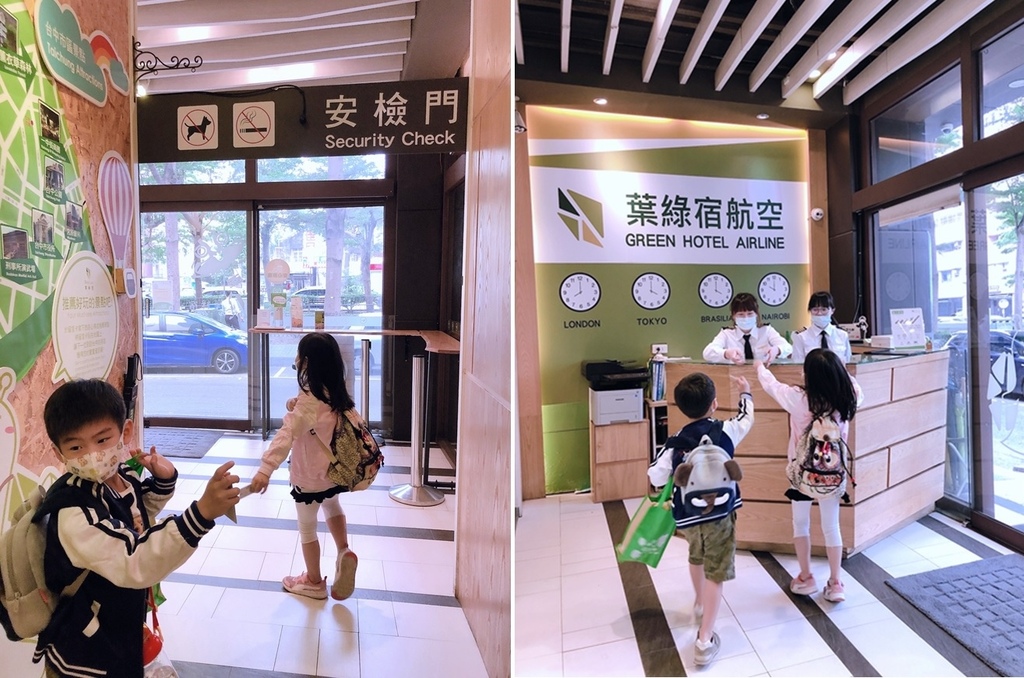 辦理入住的櫃台,搖身一變成為葉綠宿航空的櫃台,服務人員也搭配航空公司的穿著:)