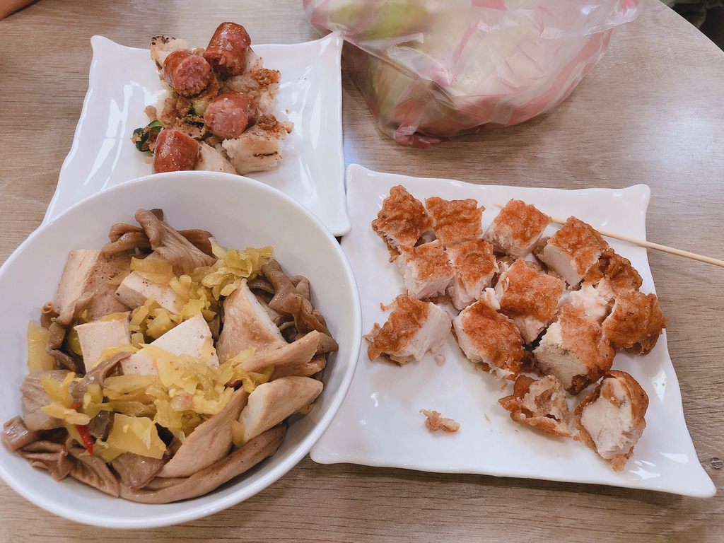晚餐後當然要買消夜回飯店吃啦!有餐具跟刀子很方便欸,方便小小孩食用,看我多用心呀~ 但美中不足的是,只有芭樂跟雞排好吃,將軍滷味也太鹹了,官芝霖大腸包小腸也不好吃呀嗚嗚。