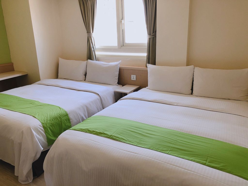 葉綠宿旅館Green Hotel分別有雙人房、三人房、四人房、背包客床位。我們入住的是四人房,約6-7坪。