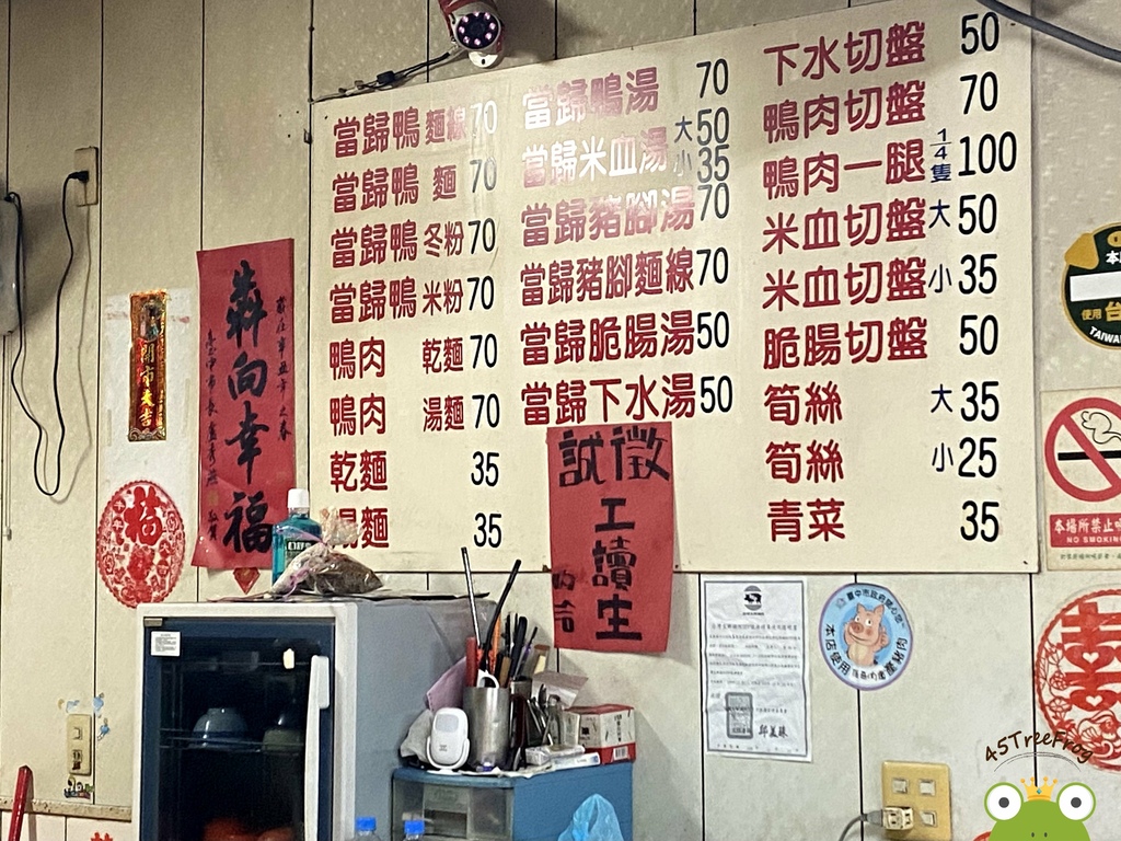 他們沒有店名,創立多年來就直接以主打餐點【當歸鴨麵線】為店名。鴨肉是煙燻過再剁成切片,湯頭則是使用中藥材去熬煮,另外下水部分也是店內很受歡迎的品項。