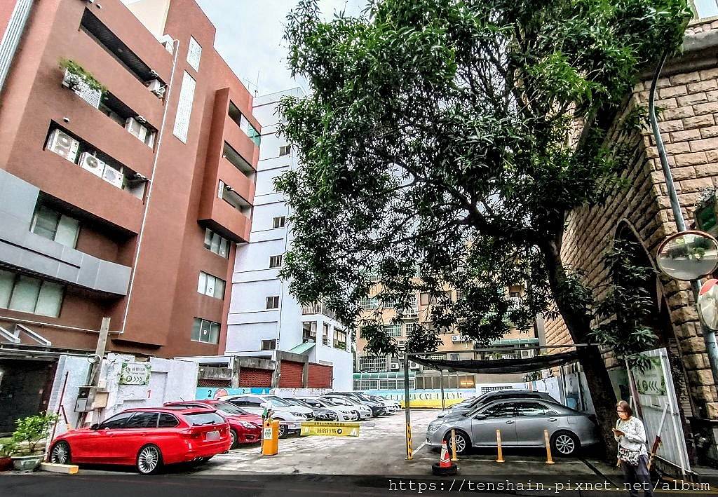 平面停車場距離飯店僅 200 公尺,車位不多,但相當寬敞,每個車位後面都清楚標示車位號碼。門口有車牌自動感應系統,住宿期間可以無限次進出,非常方便。停車場有一棵高大的土芒果樹,已經結實累累,飯店相當貼心,在芒果可能落果的範圍內搭起防護網,避免旅客的車輛受到損傷。停車場的圍牆上,有員工精心手繪的壁畫,內容是各國的指標建物。圍牆後方,大大的「GO GREEN , LOVE EARTH」,就是「綠宿行旅」念茲在茲的企業精神。