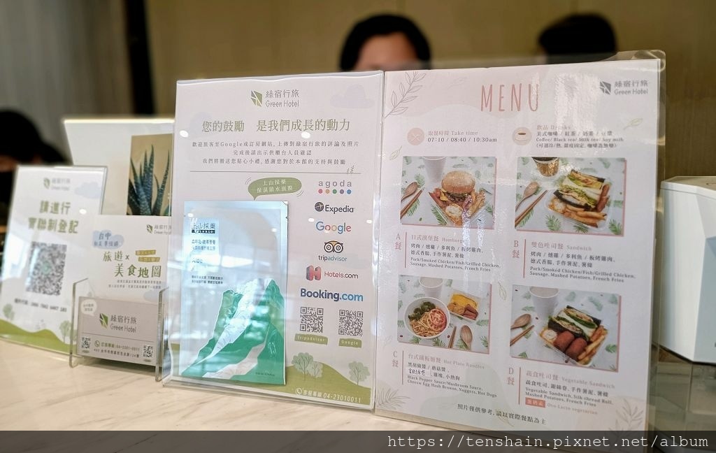 「綠宿行旅」的早餐是以套餐的方式供應(疫情期間提供外帶餐盒),所以在 CHECK IN 的時候,就要先選好翌日的早餐。