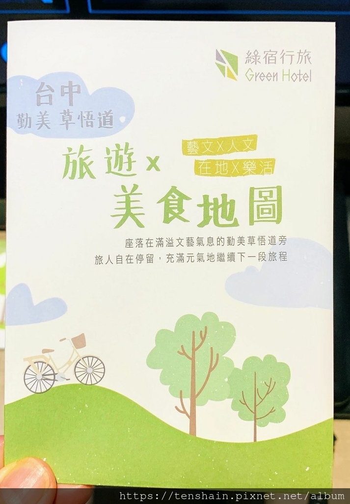 櫃台上還有一些東西引起我的注意,首先是「綠宿行旅」美工設計的手繪精美「旅遊X美食地圖」,只要按圖索驥,就不怕來台中會覺得無聊。