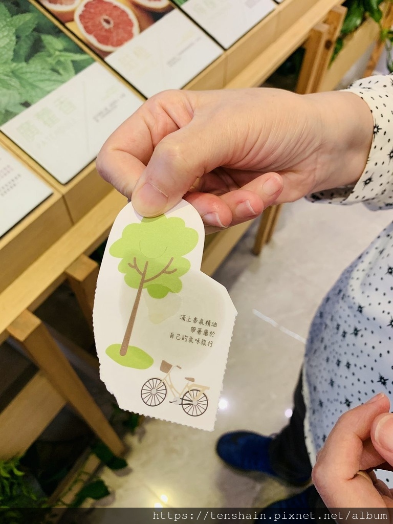 確認好你喜歡的精油後,請拿出你的創意房卡,沿著壓孔虛線,將書籤的部分撕下來,點上你最愛的精油。