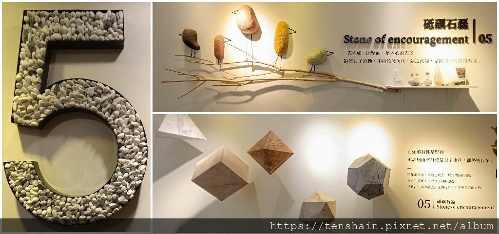 5 樓的展覽主題是「砥礪石磊」,堅硬的石頭,卻用圓潤的外觀來展現,就像人的內在要有堅強的信念,但表現在外的,卻要有圓潤收斂的態度。