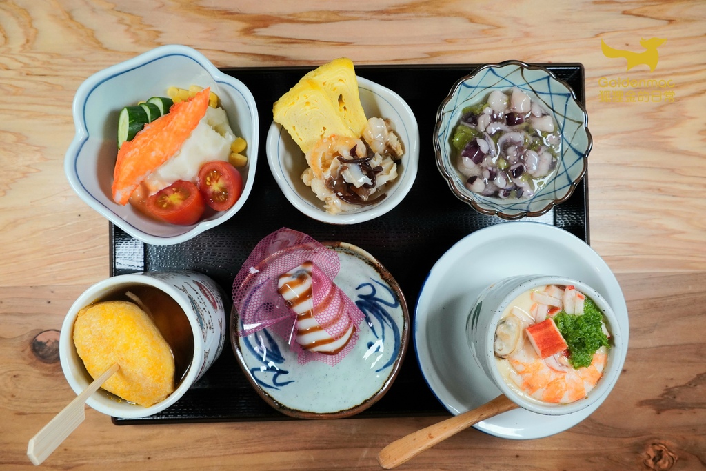 另外想吃豐盛一點的朋友絕對要加B套餐,裡頭兩款日式小菜師傅也會不定時更換,甘醇的關東煮湯頭裡頭搭配了三種不同日式丸子做成的花串,這盤一上桌小金跟吃貨友人眼睛都亮了起來。
