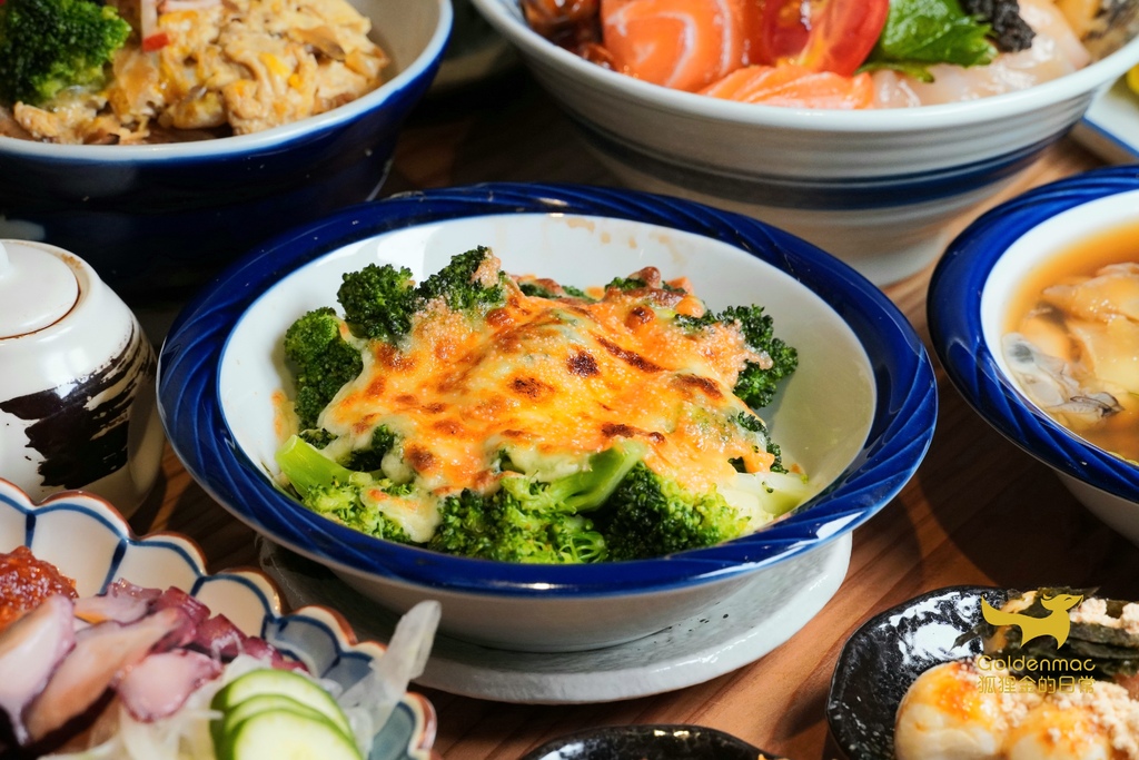 大魚大肉當然也是要來一點青菜均衡一下營養,看這金黃的焗烤色澤是不是就流口水了,熱呼呼的夾上一朵花椰菜還會牽絲喲~這真的一上桌趁熱最棒了。