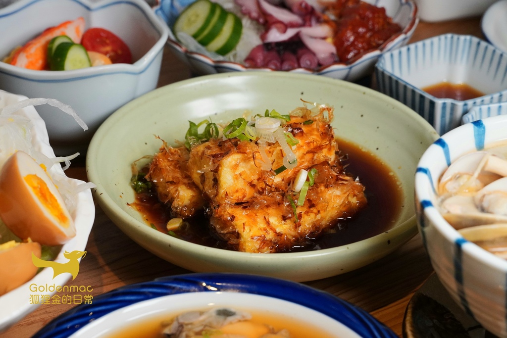 還有這外衣裏上酥酥脆脆柴魚片的揚出豆腐,澆上鹹甜鹹甜的醬汁一上桌趁熱咬下一口,滑嫩的豆腐跟酥香的外衣真的超開心的啊!
