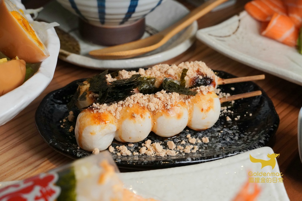 日式烤糰子真的是經典中的經典了吧!當然飽餐一頓怎麼可以沒有甜點畫下句點,QQ的烤糰子淋上帶點鹹味兒的日式醬汁跟黃豆粉,入口越嚼越香大人小孩都喜歡。