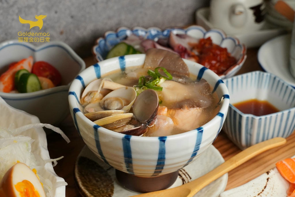 小金自己是個吃飯一定要配熱湯的人,九屋太平の聚客所這款鮮魚湯的料真的是滿到看不到湯了吧~哈哈!裡頭除了滿滿的鮮魚片之外還有蛤蠣、鮮菇一起下去熬煮,湯頭真的非常的甘醇鮮美。