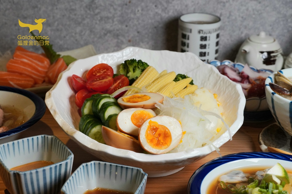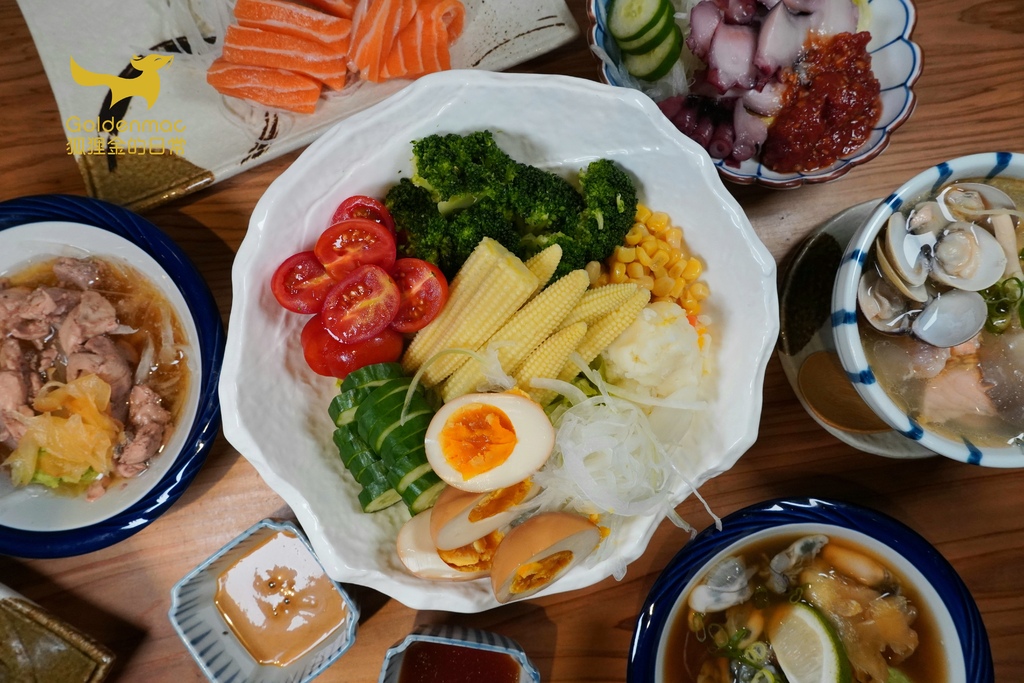 每次小金到日式餐廳就喜歡點份沙拉來當開胃前菜,九屋太平の聚客所這野菜沙拉一百多塊錢份量超驚人,裡頭除了時蔬、薯泥還給了日式糖心蛋,光看上去就很有食慾。