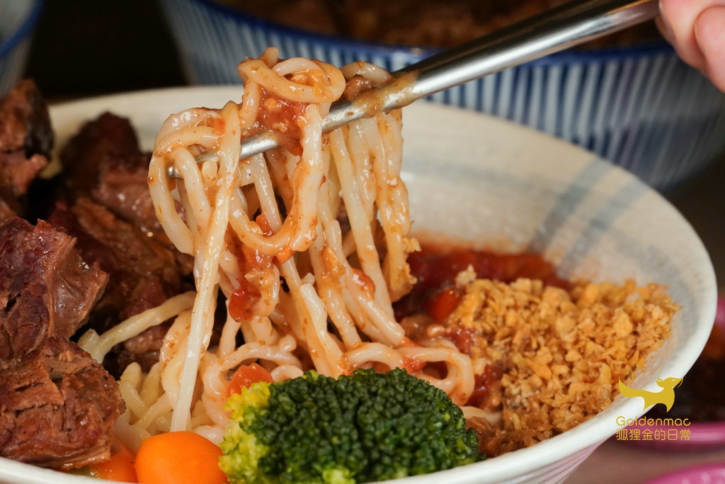 小金這天來玖零牛肉麵特別點了一個乾拌系列,裡頭一樣有著鹹香的秘製乾拌醬,再配上新鮮的番茄醬汁還有香氣十足的蒜酥,大家看這麵條巴上了滿滿的醬是不是太邪惡了呀~嘿嘿嘿!