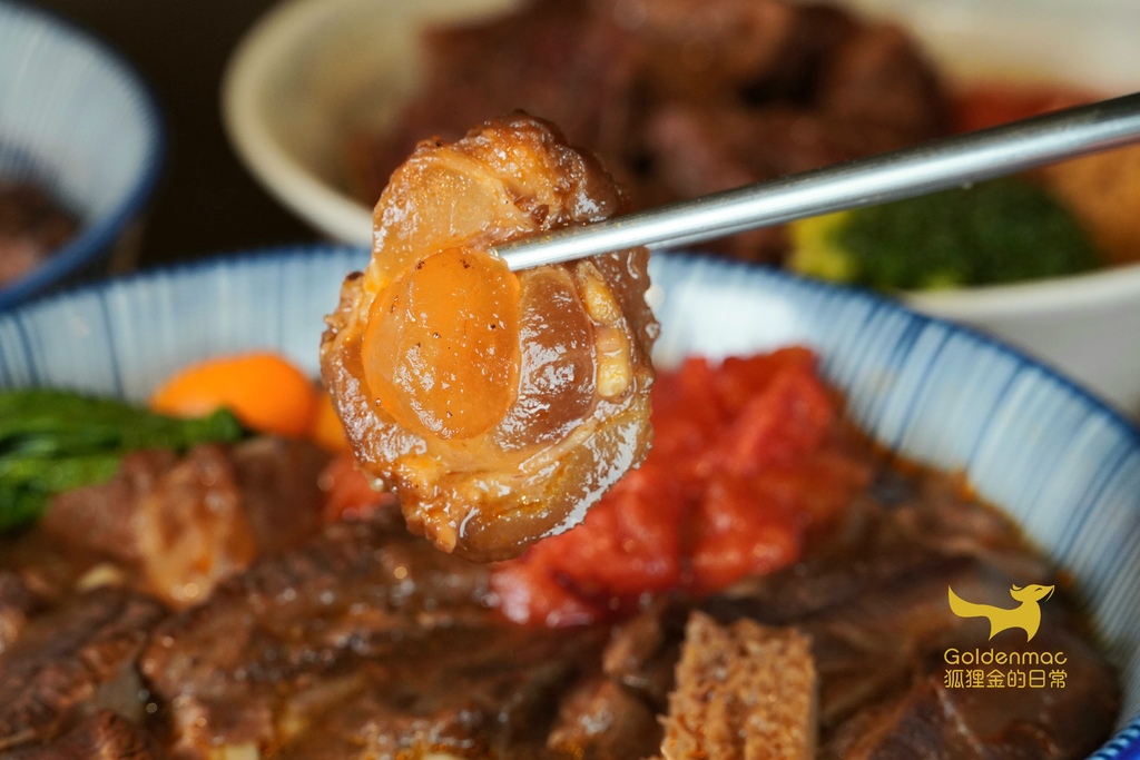 玖零牛肉麵的麵條用的是中粗麵體,比起細麵小金覺得吃牛肉麵就是要這樣有粗度帶勁兒的才對,如果不想吃麵也可以換成「冬粉」,光是想到冬粉吸了滿滿的湯汁就超棒的。