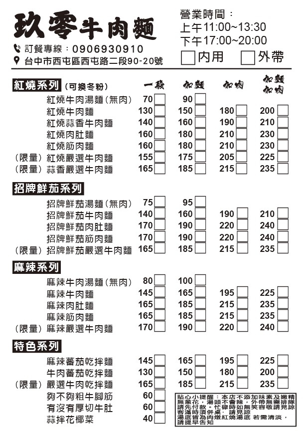 玖零牛肉麵菜單(實際營業資訊依店家公告為主)