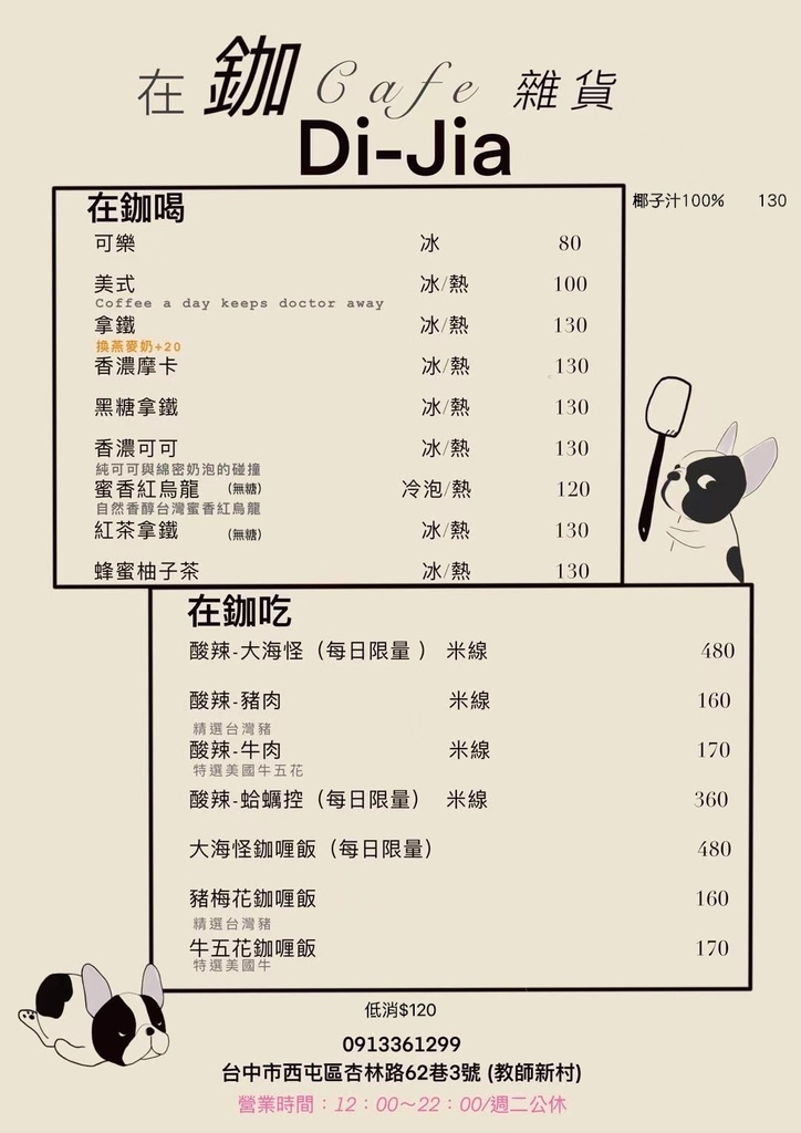 西屯寵物友善餐廳推薦-在鉫Cafe雜貨菜單 (來源:在鉫Cafe雜貨FB粉絲頁,2022.09)
