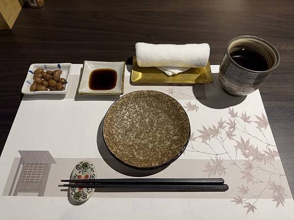在等餐點開始前,有花生及熱的無糖麥茶可以享用