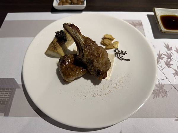4. 帶骨小牛排佐玫瑰鹽、昆布鹽、蒜片及松露杏鮑菇