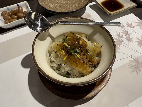 前面還沒吃飽的朋友們,中間還會提供一道飯食,比目魚肉質鬆軟,上面的刷醬更可以提升魚鮮味