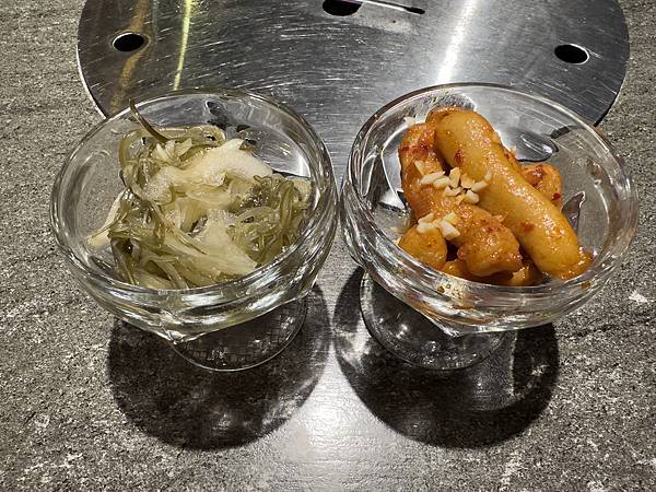 另外也給了可無限續點的小菜,左邊是海帶洋蔥、右邊是甜不辣