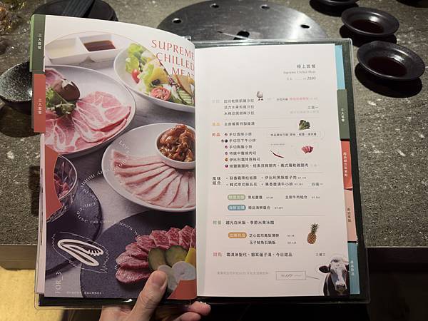 菜單為深綠色調,以兩人、三人套餐為主,還提供各種品項可以單點