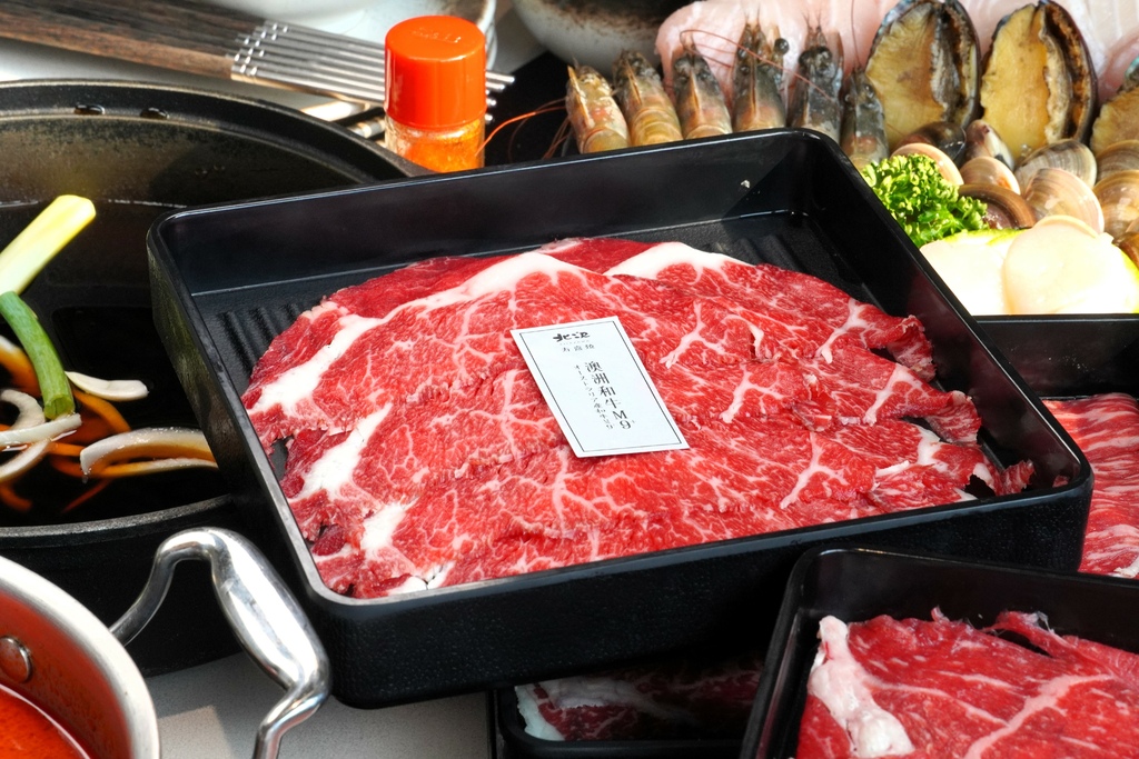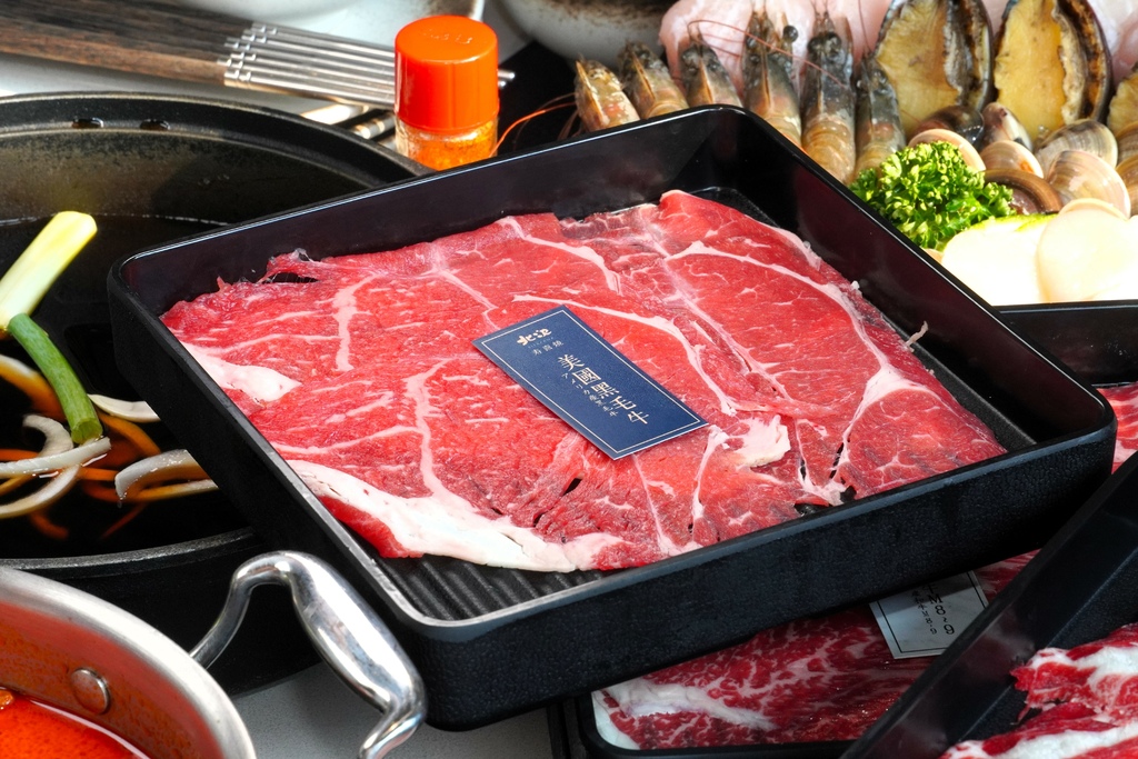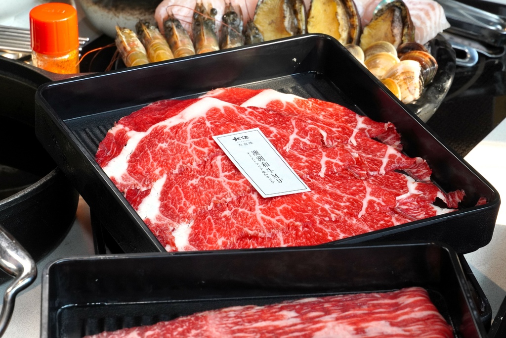 北澤壽喜燒也會一直推出不同的肉品讓大家每次來吃都可以有不同的享受,像這次小金來吃竟然還可以吃到大成集團獨家飼養育種的「黑蜜豬」,黑蜜豬的油花就像是大理石般,吃起來肉本身的鮮甜味非常的棒,支持國產豬給他一個讚