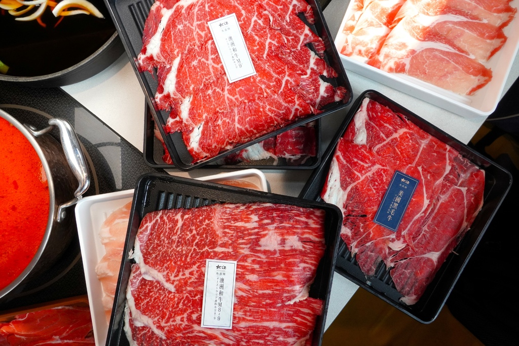 來吃北澤壽喜燒小金一定都是點「頂極和牛三盛方案」,一次可以吃到十種雞、豬、牛肉品超過癮,其中澳洲和牛M9+、澳洲和牛M8-M9、澳洲和牛M6-M7這三種肉我一定是狂點狂嗑~哈哈哈!