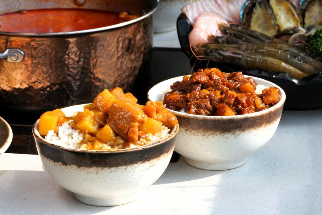 你沒有看錯,這無敵咖哩醬搭配的竟然是100%的越光米飯,這太太太享受了吧!吼~當然是一定要來上一碗的啦!另外北澤集團旗下「曾响號」台灣小吃的「黑金滷肉飯」在這裡一樣是無限吃到飽。