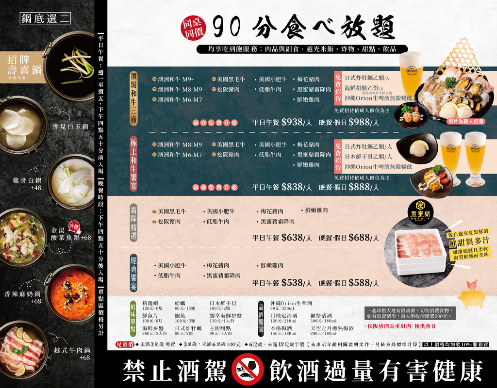 北澤壽喜燒菜單(實際營業資訊依店家公告為主)