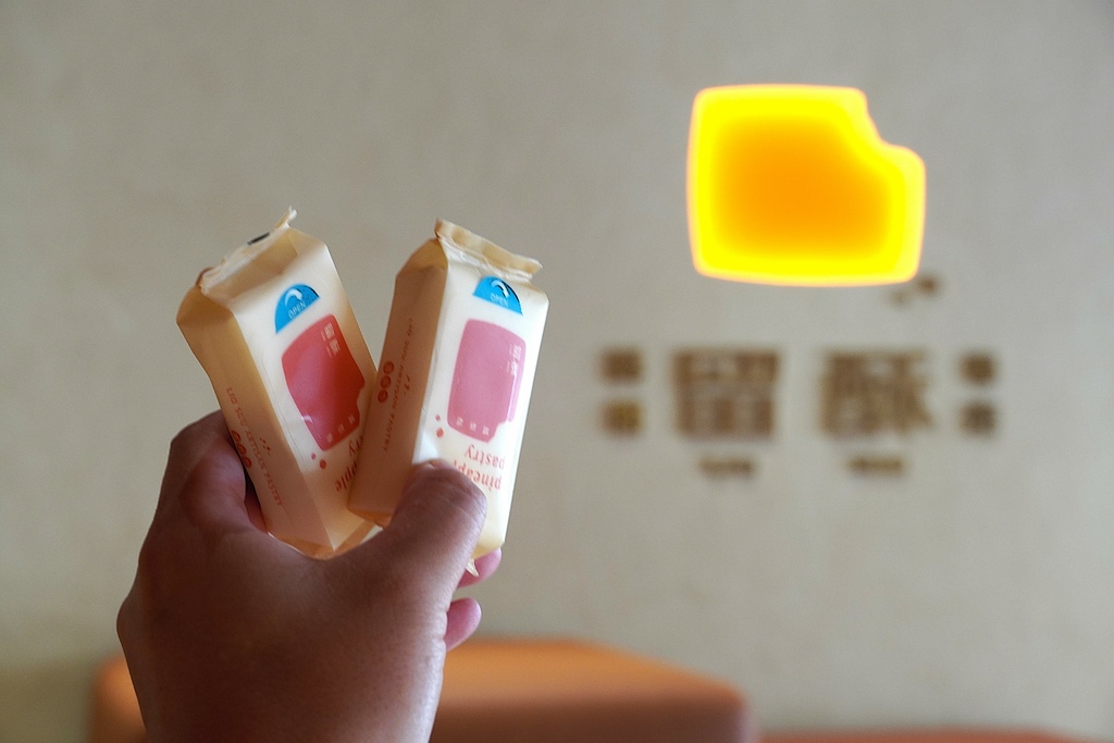 留酥LIO SUU酥餅專賣不管是從LOGO設計到空間,不少地方都可以看到可愛的鳳梨酥被咬一口的造形,也為雅緻的品牌與空間帶來一點點俏皮,我自己真的覺得超棒超喜歡的。
