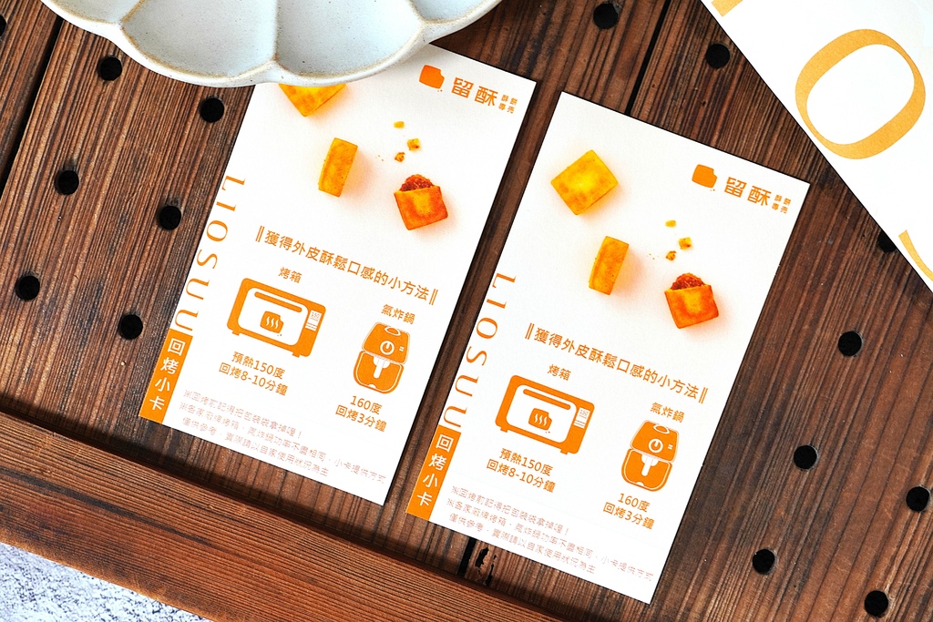 如果買回家也想要再讓留酥LIO SUU酥餅回到更接近出爐時的品嚐狀態,購買時也會貼心的附上回烤小卡,大家可以依自己的喜好來品嚐囉!