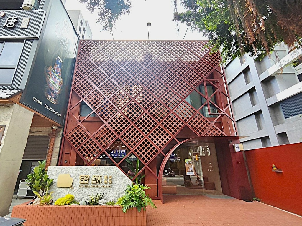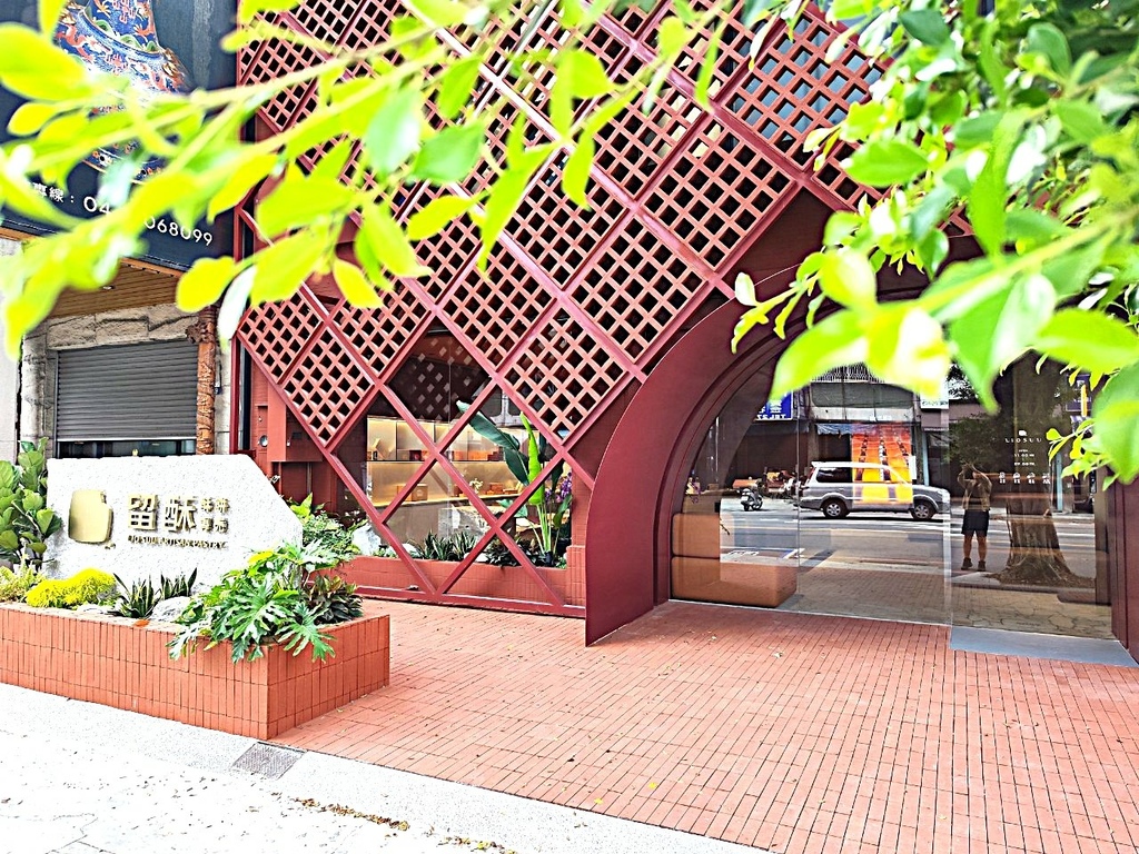 留酥LIO SUU酥餅專賣位於台中黎明路靠近青海路口,這次用台灣常見的紅磚元素融入環境,再搭配上外觀鳳梨菱形紋理,體現對台灣果物和嚴選食材的堅持,路過時真的很難不被這美美的建築給吸引目光。