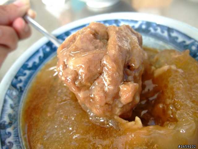 脆丸湯(一碗10元),吃完了肉圓會留下點醬料,這些醬料可別急著要老闆來收碗。懂得享受的人,會來上一碗脆丸湯,把湯加入剩下的醬料中,讓清湯融合了帶著肉香的醬料,微甜的糯米醬,感受另一番滋味。記得以前來都是吃完肉圓再喝湯,後來經人提點後,開始這樣的吃法,味道相當不同也很可口耶!