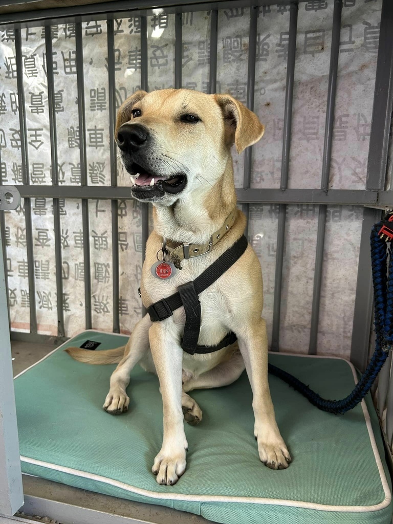 這隻是店狗來福,一隻可愛的黑嘴黃