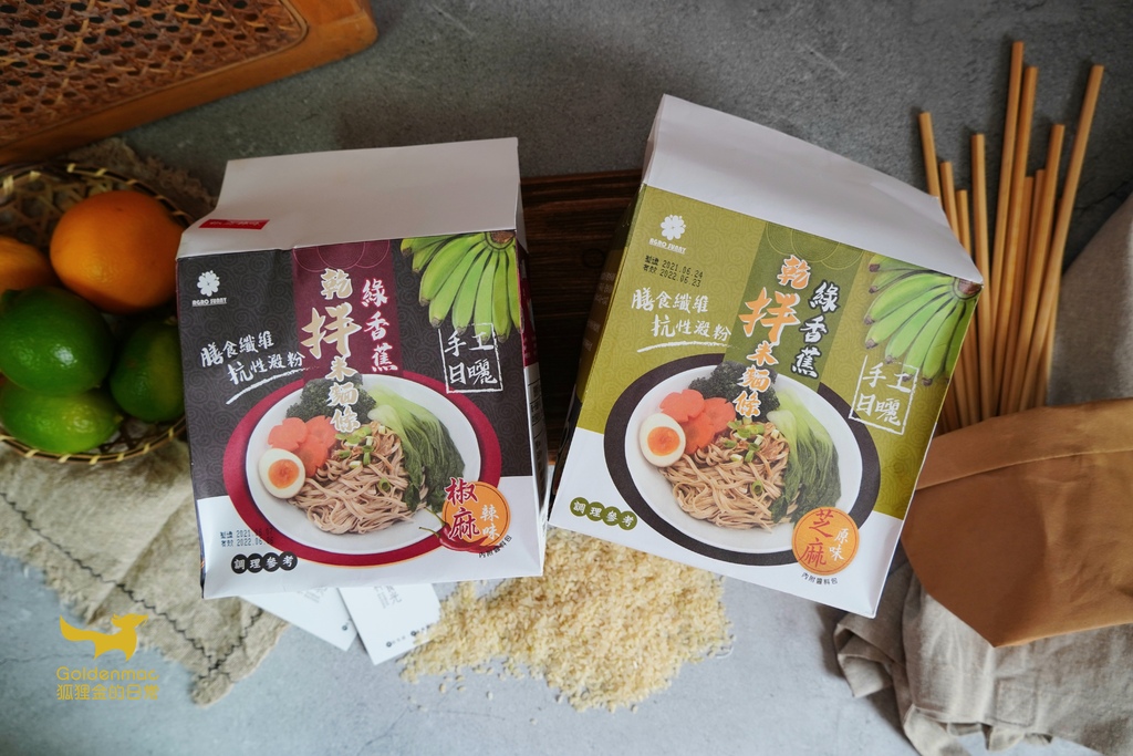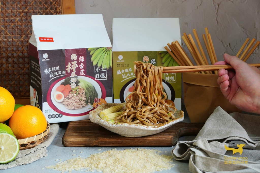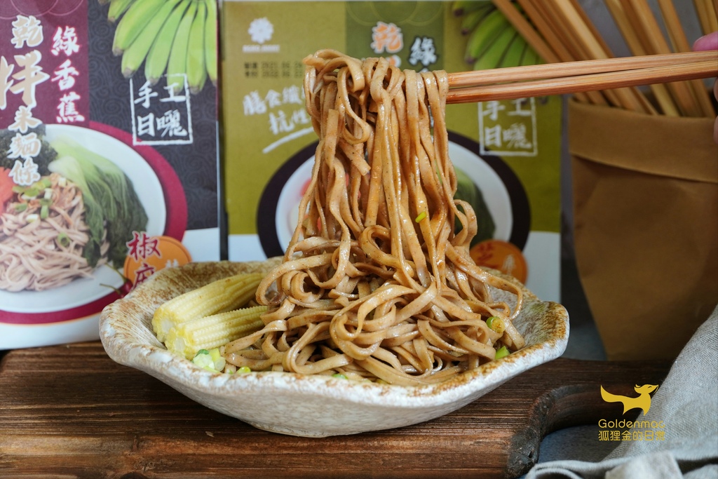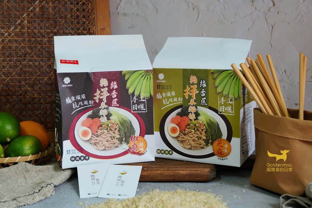 純粹食光採用半熟時期的綠香蕉製成麵條,這時候的香蕉高纖擁有豐富的膳食纖維質,有芝麻跟椒麻兩種風味,一樣是全素的朋友可以吃的喲!