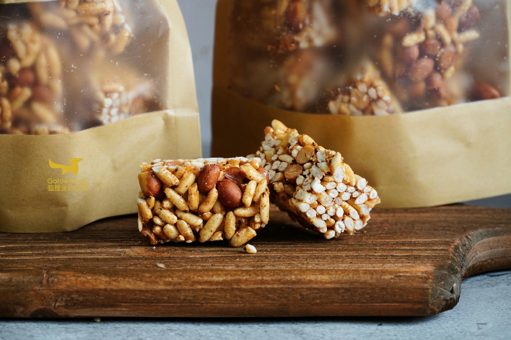 小金自己吃米香最怕的就是黏牙,純粹食光用的是麥芽糖而且是減糖的配方,所以吃起來甜度很剛好米香也可以完全被釋放出來,看照片裡那圓潤飽滿的花生~是不是真的很誘人啊!
