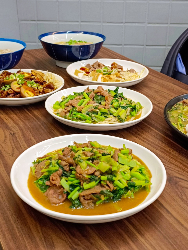 ▼我們一共點:炒牛肉、牛肉燴飯、羊肉炒麵、榨菜肉絲麵、餛飩麵、滷味