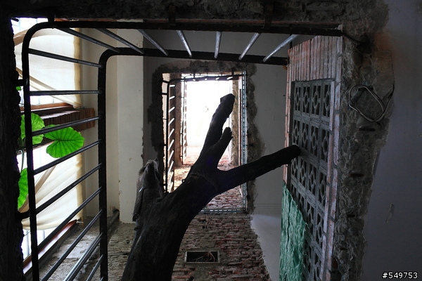中間則是上樓的樓梯,這裡也有一道天井,讓室內的採光不會因為夾在左右兩棟房子間,而顯的過於陰暗,梯子的長度只到二樓窗戶,如果能延伷到4樓,爬上去一定很棒。