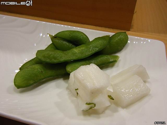 人陸陸續續抵達後,盤疊上了薑片、日本毛豆、紫蘇蘿蔔,紫蘇蘿蔔讓葉子超愛!